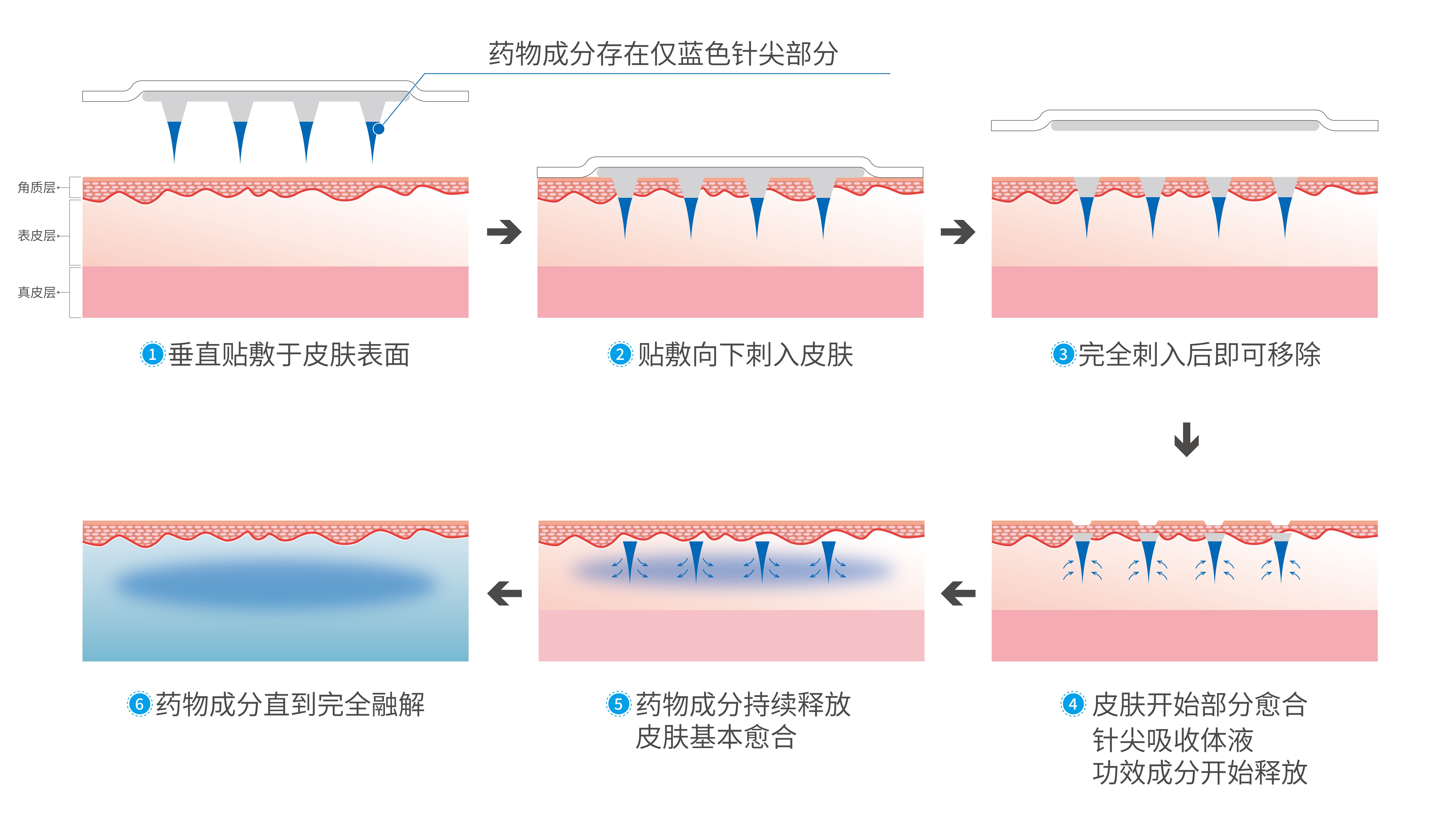 分層針工藝適合 :大分子、單價(jià)高、載藥劑量要求低的藥物。貼敷時(shí)間短,針尖溶斷即完成遞送。