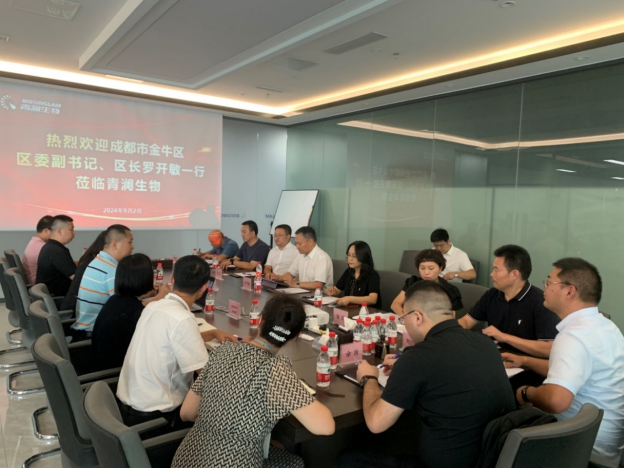 2024年9月2日下午,成都市金牛區(qū)政府各部門領(lǐng)導(dǎo)由區(qū)委副書記、區(qū)長羅開敏帶隊蒞臨青瀾生物,開展投資促進(jìn)活動,并將青瀾生物作為重點(diǎn)跟促意向企業(yè),務(wù)實(shí)洽談合作事宜。青瀾生物總經(jīng)理江林帶領(lǐng)公司管理團(tuán)隊熱情接待了金牛區(qū)政府領(lǐng)導(dǎo)一行。
